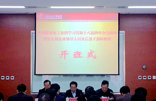 11月2日-7日,陜煤化集團(tuán)在中國延安干部學(xué)院舉辦了學(xué)習(xí)貫徹黨的十八屆四中全會精神暨第九期領(lǐng)導(dǎo)人員及后備干部研修班,參加本次研修班的學(xué)員主要是來自二級單位的領(lǐng)導(dǎo)班子成員、后備干部以及參股單位高管。集團(tuán)公司黨委副書記、工會主席馬富元、黨群工作部部長夏迎廣,中國延安干部學(xué)院培訓(xùn)部主任馬廣榮參加了開班儀式。