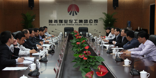 5月8日,中國(guó)銀行總行副行長(zhǎng)岳毅、陜西省分行行長(zhǎng)楊勃等一行到陜煤化集團(tuán),與陜煤化集團(tuán)董事長(zhǎng)楊照乾、總會(huì)計(jì)師趙福堂及集團(tuán)財(cái)務(wù)資產(chǎn)部負(fù)責(zé)人等進(jìn)行了座談。