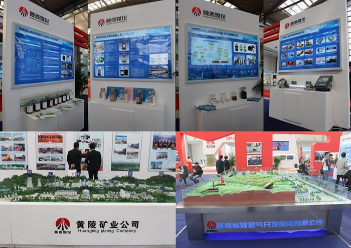 陜煤化集團(tuán)共組織黃陵礦業(yè)公司、神南張家峁礦業(yè)公司、神木煤化工公司、北元化工公司、煤層氣開發(fā)公司、西安重裝集團(tuán)、技術(shù)研究院等7家下屬企業(yè)進(jìn)行參展,展區(qū)面積達(dá)300多平方米,通過視頻、圖片、沙盤模型等形式對(duì)集團(tuán)公司近年來發(fā)展成就進(jìn)行了全方位宣傳,重點(diǎn)展示了在科技研發(fā)、煤化工技術(shù)應(yīng)用、煤層氣開發(fā)利用等方面的先進(jìn)技術(shù)和主要成果,展現(xiàn)出陜煤化集團(tuán)發(fā)展綠色低碳經(jīng)濟(jì),打造節(jié)能環(huán)保企業(yè)的決心和能力,也充分體現(xiàn)了集團(tuán)公司“崇尚自然,追求和諧”環(huán)保發(fā)展理念。