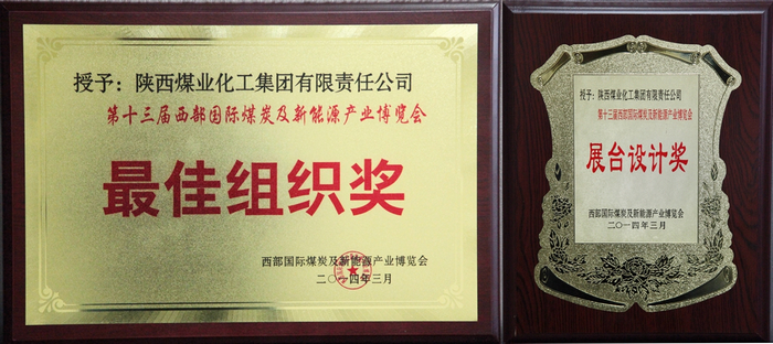 陜煤化集團(tuán)在此次博覽會(huì)上積極周密組織參展事宜,精心設(shè)計(jì)展臺(tái)布置,展臺(tái)氣勢(shì)恢宏彰顯了陜煤化自身企業(yè)文化特色,受到大會(huì)組委會(huì)的肯定和好評(píng),最終獲得最佳組織獎(jiǎng)和展臺(tái)設(shè)計(jì)獎(jiǎng)兩個(gè)獎(jiǎng)項(xiàng)。
