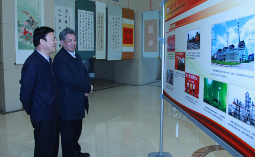 省國資委黨委書記孫安會與集團公司黨委書記、董事長華煒一同在集團十周年圖片展區(qū)參觀