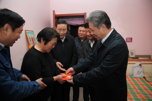 1月27日,陜煤化集團(tuán)公司董事會(huì)秘書、總經(jīng)理助理付戰(zhàn)超來(lái)到蒲白礦區(qū),對(duì)幾位困難職工和工亡家屬帶去了節(jié)日的慰問。