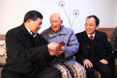 1月23日,陜煤化集團(tuán)副總經(jīng)理朱周岐在物資集團(tuán)董事長(zhǎng)沈蘭禹,副總經(jīng)理、物資公司總經(jīng)理郭旭東及相關(guān)部門負(fù)責(zé)人的陪同下,前往唐都醫(yī)院病房看望慰問患病勞模牟社民,為他送去誠(chéng)摯的問候和節(jié)日的祝福。