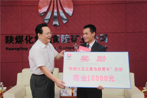 10月9日,陜煤化集團(tuán)授予黃陵礦業(yè)公司二號(hào)煤礦職工張榮 “見義勇為好青年”的榮譽(yù)稱號(hào),號(hào)召集團(tuán)廣大員工學(xué)習(xí)張榮見義勇為、舍身救人的精神,為改革發(fā)展凝聚正能量。 集團(tuán)公司黨委副書記馬富元代表陜煤化集團(tuán)公司為張榮同志頒發(fā)了“見義勇為好青年”獎(jiǎng)杯、榮譽(yù)證書和一萬(wàn)元獎(jiǎng)金。黃陵礦業(yè)公司黨政領(lǐng)導(dǎo)及相關(guān)部門負(fù)責(zé)人、團(tuán)員青年代表參加了表彰座談會(huì)。
