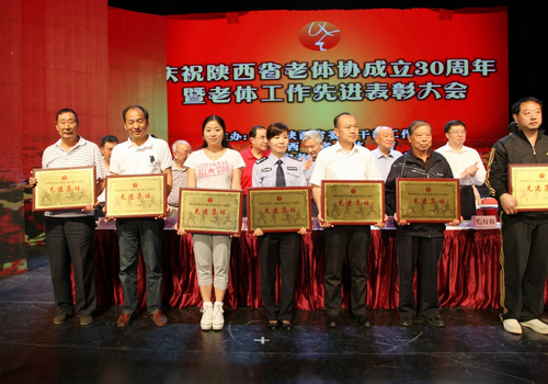 10月11日,在我國第一個法定老年節(jié)來臨之際,由省委老干局、省體育局、省老齡委和省老體協(xié)聯(lián)合舉辦的慶祝老體協(xié)成立30周年暨老體工作先進(jìn)表彰大會在西安舉行。集團(tuán)公司黨群工作部獲“陜西省老年體育工作先進(jìn)集體”榮譽(yù)稱號;集團(tuán)公司黨委副書記、工會主席馬富元榮獲“陜西省支持老年體育事業(yè)發(fā)展領(lǐng)導(dǎo)”稱號;集團(tuán)公司機(jī)關(guān)黨委書記、黨群工作部部長夏迎廣等四人獲“老年體育工作先進(jìn)個人”榮譽(yù)稱號;集團(tuán)公司陳毅民等八位老人獲得“全省健康老人”稱號。此外,由陜煤化集團(tuán)銅川實業(yè)公司選派的節(jié)目——《藥王山下老來樂》,參加了省老體協(xié)表彰大會的匯報演出。