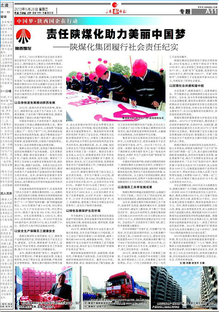 這本以“高碳產(chǎn)業(yè)、低碳發(fā)展,讓綠色伴隨你我他”為主題的社會責任報告,系統(tǒng)回顧了陜煤化集團2012年在認真履行企業(yè)社會責任方面做出的努力和取得的豐碩成果,也再一次向社會各界展示了一個國有特大型能源化工企業(yè)以強烈的社會責任感為實現(xiàn)中國夢而釋放的正能量!