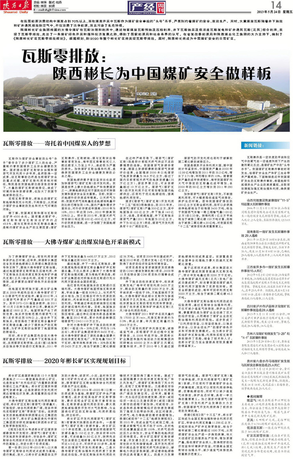 在省發(fā)改委能源局和陜西煤業(yè)化工集團(tuán)的大力支持下,編制了《陜西彬長礦區(qū)瓦斯零排放規(guī)劃》。根據(jù)規(guī)劃,到2020年整個(gè)彬長礦區(qū)將實(shí)現(xiàn)瓦斯零排放。屆時(shí),陜西彬長將成為中國煤礦安全的示范礦區(qū)。