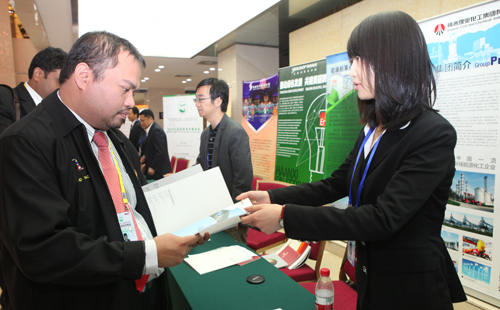 陜煤化集團(tuán)的展示宣傳主要圍繞會(huì)議“綠色發(fā)展”的主題,重點(diǎn)展示了集團(tuán)公司近年來改革發(fā)展中取得的巨大成就,以“煤炭開發(fā)為基礎(chǔ),煤化工為主導(dǎo),多元互補(bǔ)發(fā)展”的發(fā)展戰(zhàn)略,以及在煤炭高效綠色安全開發(fā)、煤分質(zhì)高效清潔利用、低濃度瓦斯利用、新一代甲醇制取低碳烯烴(DMTO-Ⅱ)等方面的先進(jìn)理念和技術(shù)。來自印度的參會(huì)代表,對(duì)集團(tuán)的煤分質(zhì)高效清潔利用技術(shù)表現(xiàn)出興趣,認(rèn)為這是實(shí)現(xiàn)能源企業(yè)綠色低碳發(fā)展的好途徑。來自土耳其和馬來西亞的參會(huì)代表對(duì)集團(tuán)煤化工產(chǎn)業(yè)中新一代甲醇制取低碳烯烴(DMTO-Ⅱ)技術(shù)進(jìn)行了詳細(xì)的咨詢,并認(rèn)為隨著此項(xiàng)技術(shù)的推廣應(yīng)用,將推進(jìn)亞洲各國(guó)更為節(jié)能環(huán)保的進(jìn)行能源開發(fā)利用。來自巴基斯坦、尼泊爾和蘇丹的參會(huì)代表還對(duì)集團(tuán)的環(huán)保建材、綠色健康產(chǎn)業(yè)進(jìn)行了了解。(錢 鍇 陸錦韻)
