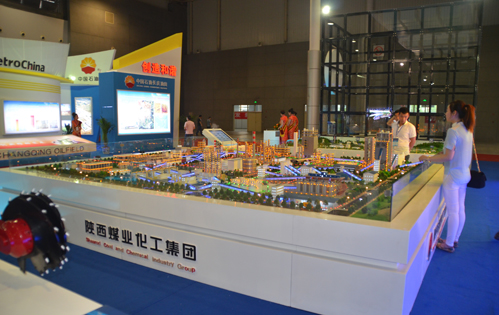 陜煤化集團(tuán)所屬的神木煤化工“清水園大型清潔能源綜合利用示范項(xiàng)目”沙盤、黃陵礦業(yè)公司“低碳環(huán)保礦區(qū)建設(shè)項(xiàng)目”沙盤、彬長(zhǎng)礦業(yè)公司“瓦斯資源綜合利用項(xiàng)目”沙盤;西安重裝集團(tuán)采煤機(jī)模型、神木煤化工天元公司和富油公司主要產(chǎn)品、北元化工公司主要產(chǎn)品、西安重裝集團(tuán)LED燈具產(chǎn)品等也都在集團(tuán)展區(qū)內(nèi)作了展示。