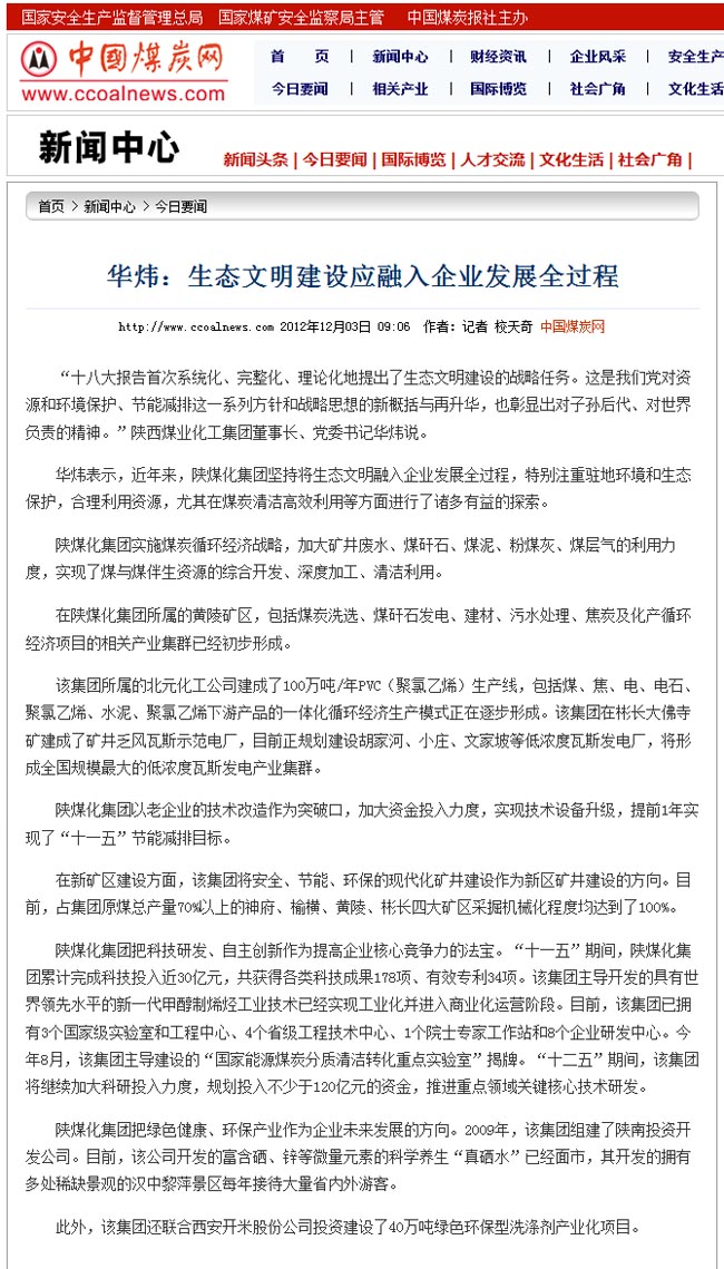 中國(guó)煤炭報(bào)2012年12年3日第一版