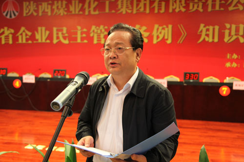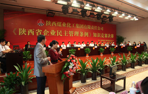 為了營造貫徹《陜西省企業(yè)民主管理條例》的良好氛圍,推動《條例》在基層全面落實,9月26日,由陜西煤業(yè)化工集團(tuán)公司工會主辦、實業(yè)集團(tuán)公司承辦的《陜西省企業(yè)民主管理條例》知識競賽決賽在西安隆重舉行。集團(tuán)公司黨委副書記、工會主席馬富元,工會副主席付曉陽、企業(yè)文化部部長孫鵬、實業(yè)集團(tuán)董事長姚京林、總經(jīng)理楊柏鎖及集團(tuán)公司所屬各單位工會主席、民管干部觀看了比賽。