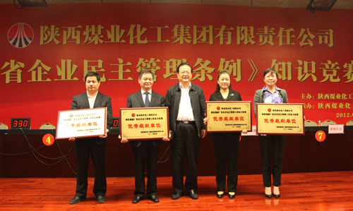 集團(tuán)公司黨委副書記、工會主席馬富元為獲獎代表隊頒獎并發(fā)表講話,代表集團(tuán)公司黨委、工會向取得優(yōu)異成績的代表隊表示由衷的祝賀。他說《陜西省企業(yè)民主管理條例》于2012年5月29日由陜西省十一屆人大常委會第二十九次會議審議通過,這是我省第一部全面規(guī)范企業(yè)民主管理活動的地方性法規(guī),是廣大職工群眾政治生活中的一件大事,也是推進(jìn)企業(yè)民主政治建設(shè)的重要契機(jī)?!稐l例》的頒布實施,是全省廠務(wù)公開民主管理工作的里程碑,必將有力地推動集團(tuán)公司廠務(wù)公開民主管理工作邁上新臺階。