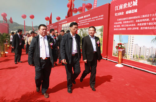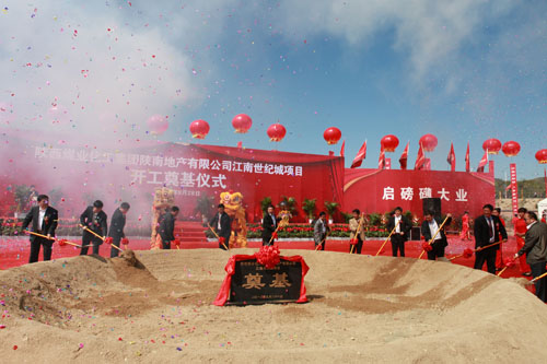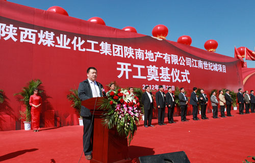 9月28日上午,陜西煤業(yè)化工集團公司“支持陜南發(fā)展、造福陜南人民”的首個千畝生態(tài)人居工程“江南世紀城”項目開工奠基儀式在商洛市隆重開幕。商洛市委書記魏增軍和市上主要領導、陜煤化集團公司總經理楊照乾、陜煤化集團陜南投資開發(fā)公司董事長寧興剛及項目承建、施工、監(jiān)理單位等主要領導和各界嘉賓出席了奠基儀式。西安電視臺、華商報、西安日報、西安晚報等多家新聞媒體蒞臨現場,共同見證了這一惠及民生、造福商洛的歷史時刻。