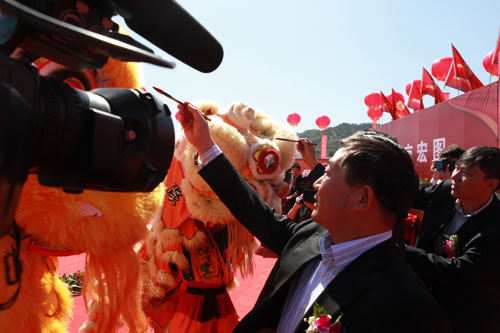 典禮現場,鑼鼓陣陣、禮炮轟鳴、勁樂齊奏、舞獅歡騰,上百面陜煤化集團公司旗幟迎風飄揚,三架滑翔翼在開工典禮上空盤旋飛翔,江南世紀城盛大的開工典禮吸引了眾多到場觀摩的商洛市民。