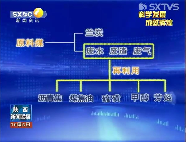2012年10月6日陜西電視臺(tái)陜西新聞聯(lián)播報(bào)道陜煤化集團(tuán)主導(dǎo)陜北蘭炭產(chǎn)業(yè)綠色發(fā)展