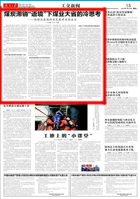 陜西日?qǐng)?bào)2012年7月24日第15版頭條