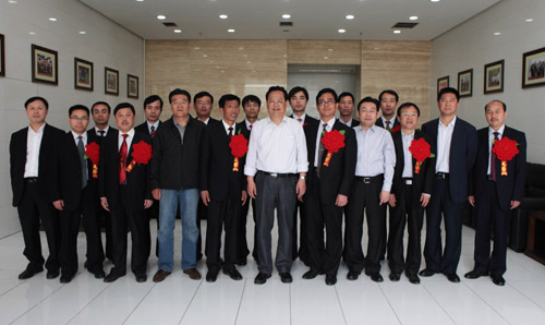 參加歡送儀式的集團(tuán)公司領(lǐng)導(dǎo)與勞模合影留念
