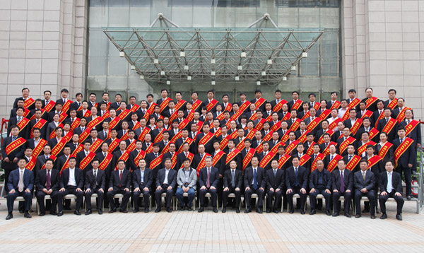 會前,集團(tuán)公司領(lǐng)導(dǎo)與受表彰的勞動模范、先進(jìn)個人合影留念