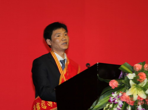 神南張家峁礦業(yè)公司綜采二隊副隊長程志偉代表受表彰的勞動模范宣讀題為《當(dāng)好主力軍,建功“十二五”,為實(shí)現(xiàn)陜煤化集團(tuán)挺進(jìn)世界500強(qiáng)再立新功》的倡議書。倡議集團(tuán)公司各條戰(zhàn)線上的廣大員工,解放思想,堅定信念,爭做改革發(fā)展的踐行者;立足本職,建功立業(yè),爭做率先發(fā)展的主力軍;苦練內(nèi)功,提升素質(zhì),爭做科學(xué)發(fā)展的排頭兵。;維護(hù)大局,弘揚(yáng)正氣,爭做和諧發(fā)展的促進(jìn)者。在集團(tuán)公司黨政的正確領(lǐng)導(dǎo)下,攜手共進(jìn),開拓創(chuàng)新,以更寬廣的視野、更堅定的信念、更務(wù)實(shí)的作風(fēng),振奮精神,奮發(fā)有為,在加快轉(zhuǎn)變發(fā)展方式、推進(jìn)結(jié)構(gòu)調(diào)整、促進(jìn)集團(tuán)公司實(shí)現(xiàn)新的歷史性跨越中,接受新考驗(yàn),展示新風(fēng)采,譜寫新篇章,以優(yōu)異成績迎接黨的十八大的勝利召開!