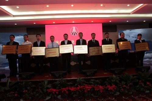 集團(tuán)公司黨委副書記馬富元、副總經(jīng)理魏鐵軍為獲得一等獎單位頒獎