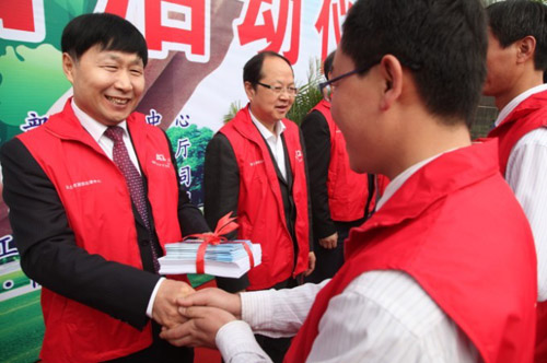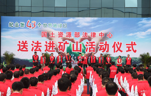 4月20日上午,國土資源部法律中心、陜西省國土資源廳紀(jì)念第43個世界地球日送法進(jìn)礦山主題普法活動在陜西煤業(yè)化工集團(tuán)黃陵礦業(yè)公司隆重舉行。國土資源部法律中心黨委書記、主任孫英輝,陜西省國土資源廳執(zhí)法局副調(diào)研員黃安貴,陜煤化集團(tuán)董事、陜煤股份公司總經(jīng)理、黃陵礦業(yè)公司董事長宋老虎,陜煤化集團(tuán)副總經(jīng)理魏鐵軍,集團(tuán)公司有關(guān)部門負(fù)責(zé)人,黃陵礦業(yè)公司總經(jīng)理范京道,副總經(jīng)理邢光軍及陜西黃河集團(tuán),陜西鋼鐵集團(tuán),中國地質(zhì)大學(xué)等單位的博士服務(wù)團(tuán)成員和相關(guān)領(lǐng)導(dǎo)及礦區(qū)近300名一線礦工參加了送法儀式。魏鐵軍主持儀式。