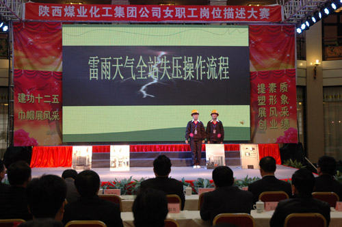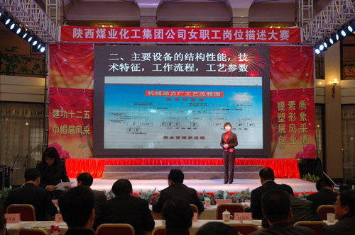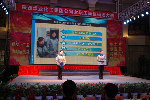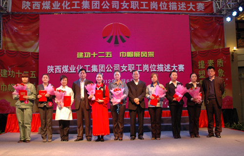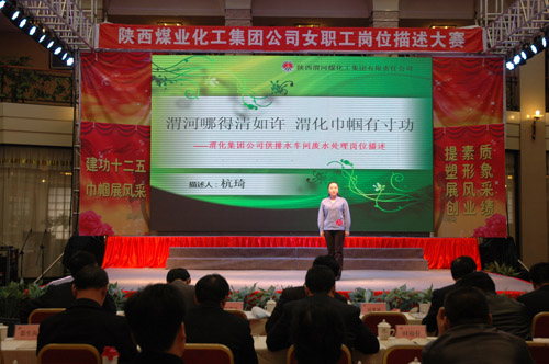 “三八”國際婦女節(jié)來臨之際,陜西煤業(yè)化工集團公司工會女職工委員會積極響應集團公司2012年工作會上提出的強化人力資源管理,提高職工隊伍素質(zhì)的號召,于3月6日上午在渭化集團舉辦了“建功十二五?巾幗展風采”女職工崗位描述大賽,來自22個單位21個工種崗位的28名女職工用崗位描述這個特殊形式表達她們?nèi)绾伟l(fā)揮巾幗生力軍作用、建功一流企業(yè)集團的決心和信心。陜煤化集團公司黨委副書記、工會主席馬富元,集團公司董事、渭化公司董事長、黨委書記錢嘉賓,集團公司機關(guān)黨委書記、黨群工作部部長夏迎廣,渭化公司總經(jīng)理郭建功,集團公司工會副主席付曉陽,集團人力資源部經(jīng)理李聰及渭化公司黨委副書記、紀委書記、工會主席劉智出席了本次活動。