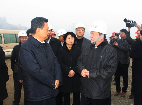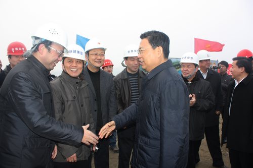 1月18日,陜西省委書記、省人大常委會(huì)主任趙樂際,省人大常委會(huì)副主任、省總工會(huì)主席黃瑋等領(lǐng)導(dǎo)來到安康進(jìn)行工作調(diào)研。趙樂際書記等領(lǐng)導(dǎo)特意來到由陜西煤業(yè)化工集團(tuán)公司承建的安康濱江大道三期市政項(xiàng)目施工現(xiàn)場(chǎng)進(jìn)行調(diào)研,并對(duì)臨近春節(jié)繼續(xù)奮戰(zhàn)在一線的廣大干部職工致以春節(jié)慰問。安康市委書記方瑋峰、市人大常委會(huì)主任劉建明、代市長郭青、安康住房和城鄉(xiāng)建設(shè)局等有關(guān)部門領(lǐng)導(dǎo)以及陜煤化集團(tuán)陜南投資開發(fā)公司黨委書記、董事長寧興剛,總經(jīng)理石尚龍陪同調(diào)研。