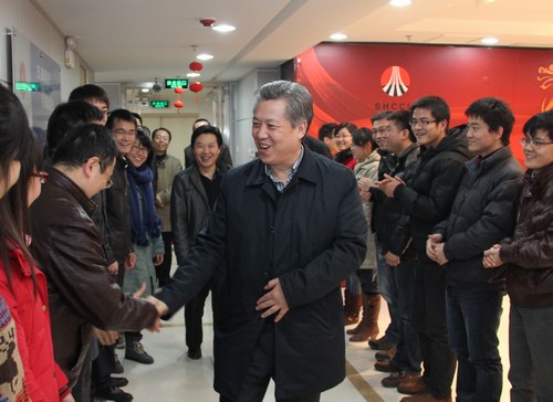 在研究院會(huì)議室,董事長(zhǎng)華煒首先代表集團(tuán)公司黨政向科技板塊和集團(tuán)公司廣大科技工作者拜年,祝廣大科技工作者新年健康快樂(lè),工作順利!研究院領(lǐng)導(dǎo)李向東、閔小建匯報(bào)了研究院2011年的工作情況和2012年的重點(diǎn)工作計(jì)劃。聽(tīng)了匯報(bào)后,董事長(zhǎng)華煒高興地說(shuō),看到研究院擁有這么多年輕的科技工作者,我感到很振奮,科技創(chuàng)新是提高集團(tuán)核心競(jìng)爭(zhēng)力的重要支撐,決定著集團(tuán)未來(lái)的地位和業(yè)績(jī),希望你們這些年輕的科技工作者快速成長(zhǎng),勇攀科技高峰,為集團(tuán)公司的進(jìn)一步發(fā)展壯大作出應(yīng)有的貢獻(xiàn)。研究院2012年的工作目標(biāo)既有難度,又充滿希望,希望你們樹立“要么不做,做就做最好”的思想觀念,集合優(yōu)勢(shì)力量,勇于追求一流,創(chuàng)造更多的工作亮點(diǎn),創(chuàng)造更加燦爛的輝煌。在談到進(jìn)一步引進(jìn)人才時(shí),董事長(zhǎng)華煒明確指出,我們要從提高收入、提高福利待遇等方面創(chuàng)造更好的條件,敞開(kāi)胸懷,吸納更多的人才來(lái)到集團(tuán)工作。