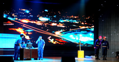 演出在桑樹坪礦普通職工表演的《礦工的愛》中拉開帷幕,鏗鏘有力、充滿激情的表演充分展現(xiàn)了桑樹坪礦職工在災(zāi)害面前所表現(xiàn)出的對礦山的真摯情感和深沉的愛;鑼鼓說唱《集團贊歌》,敲出了陜煤化人激情昂揚的風(fēng)采,謳歌了陜煤化集團“十一五”的輝煌成就,展現(xiàn)了集團“十二五”美好的發(fā)展景象;《關(guān)懷與激勵》道出了韓城礦業(yè)遇到災(zāi)難時集團及兄弟單位和用戶雪中送炭的真摯感情,抒發(fā)了“集團是靠山,大愛滿人間”的感恩情懷;情景劇《危急時刻》,由桑樹坪礦一線職工再現(xiàn)了災(zāi)情面前臨危不亂、及時匯報、迅速撤人、果斷處置、成功避免重大人員傷亡的決策行為、組織能力和安全管理水平。女聲獨唱《請到我們韓城來》、配樂詩朗誦《激情跨越》、舞蹈《礦山歡歌》、地方戲曲聯(lián)唱、詩與歌《沁園春?雪》、器樂合奏《茉莉花》、男聲獨唱《向天再借五百年》等節(jié)目展示了陜煤化人寬廣的胸懷和對遠大理想的追求,使演出不斷推向高潮,歌舞《夢在遠方》,通過桑樹坪礦職工的深情表演,表達了韓城礦業(yè)公司全體干部職工祝福陜煤,滿懷信心,闊步走在金色的大道上的豪情和干勁,使晚會又一次達到高潮。