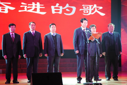 演出開始前,韓城礦業(yè)公司6名公司領(lǐng)導(dǎo)向集團公司領(lǐng)導(dǎo)及各兄弟單位職工代表和觀眾朋友拜年,祝大家龍年大吉、萬事如意!公司黨委書記、董事長王世斌致詞,他說,這是獻給集團公司及兄弟單位的一臺感恩的匯報演出,以答謝集團公司對韓城礦業(yè)公司的大力支持和兄弟單位的熱情幫助。韓城礦業(yè)公司感恩集團公司大家庭的溫暖,感恩省委省政府的關(guān)懷,感恩兄弟單位的慷慨解囊。他還展望了韓城礦業(yè)公司2012年的主要工作和未來幾年的發(fā)展前景,并表示要以優(yōu)異的成績回報集團公司的厚愛和大家的關(guān)懷。