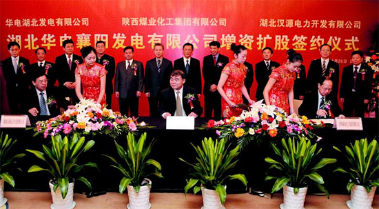 11月28日,陜西煤業(yè)化工集團(tuán)公司、華電湖北發(fā)電有限公司、湖北漢源電力開發(fā)有限公司在武漢共同簽署了《湖北華電襄樊發(fā)電有限公司增資擴(kuò)股協(xié)議》。該協(xié)議的簽訂標(biāo)志著三方將開啟戰(zhàn)略合作、煤電聯(lián)營的新里程,真正實現(xiàn)跨省、跨區(qū)強(qiáng)強(qiáng)聯(lián)合,上下延伸、優(yōu)勢互補(bǔ)、資源共享。
