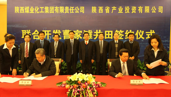 12月5日下午,陜西煤業(yè)化工集團公司與陜西省產(chǎn)業(yè)投資有限公司聯(lián)合開發(fā)曹家灘井田簽約儀式在人民大廈會展中心舉行。陜煤化集團董事長、黨委書記華煒與省產(chǎn)業(yè)投資公司董事長、黨委書記郭慶國代表雙方企業(yè)簽約。陜煤化集團總經(jīng)理楊照乾,副總經(jīng)理尤西蒂,董事宋老虎,總會計師趙福堂和陜西金融控股(集團)有限公司董事長權(quán)永生,副總經(jīng)理顧德剛,省產(chǎn)業(yè)投資公司常務(wù)副總經(jīng)理賀偉軒、副總經(jīng)理徐晉等出席了簽約儀式。