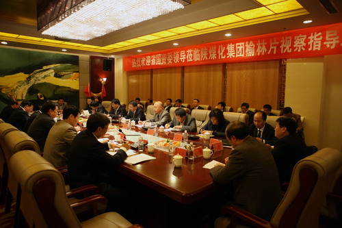 11月2日上午,周玉明書記、王浩生副主任與陜煤化集團(tuán)陜北片區(qū)各企業(yè)進(jìn)行了座談。 會上,集團(tuán)公司董事長、黨委書記華煒作工作匯報(bào)。華煒董事長首先對省國資委多年來對陜煤化集團(tuán)改革發(fā)展所給予的高度關(guān)注和大力支持表示了衷心的感謝,并就集團(tuán)公司“十一五”期間工作成績及“十二五”發(fā)展規(guī)劃目標(biāo)等情況向省國資委領(lǐng)導(dǎo)進(jìn)行了全面深入的匯報(bào)。華煒董事長說,“十一五”期間,陜煤化集團(tuán)已經(jīng)初步完成了從單一的煤炭生產(chǎn)到“煤炭主導(dǎo),多元發(fā)展”的產(chǎn)業(yè)轉(zhuǎn)型,形成了自主創(chuàng)新的科技支撐體系,實(shí)現(xiàn)了經(jīng)濟(jì)總量每兩年翻一番的高速發(fā)展,職工平均收入也由集團(tuán)組建之初的1.8萬元提高至目前的6萬元?!笆濉逼陂g,集團(tuán)公司將繼續(xù)堅(jiān)持“以煤炭開發(fā)為基礎(chǔ),煤化工為主導(dǎo),多元發(fā)展”的既定戰(zhàn)略,按照產(chǎn)業(yè)高級化、產(chǎn)權(quán)多元化、效益最大化的原則,重視煤炭清潔利用,大力發(fā)展循環(huán)經(jīng)濟(jì),力爭于“十二五”末實(shí)現(xiàn)投資規(guī)模2000億、煤炭產(chǎn)量2億噸、銷售收入2000億、利稅500億、職工平均收入達(dá)到10萬元的“22251”目標(biāo),努力把陜煤化集團(tuán)建設(shè)成為國內(nèi)領(lǐng)先、國際知名的現(xiàn)代化特大型能源化工企業(yè)集團(tuán)。