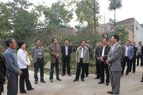 與會人員在扶助村鎮(zhèn)聽地方領(lǐng)導(dǎo)講解匯報