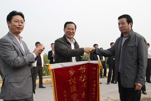 當天上午,與會人員驅(qū)車來到蒲城縣荊姚鎮(zhèn)的姚吳村和原東村、龍陽鎮(zhèn)的店子村和三家村實地參觀了蒲白礦業(yè)公司在蒲城縣已完成的扶助項目,聽取了當?shù)卣h、鄉(xiāng)、村三級干部對扶助工程項目進展情況和后期發(fā)展規(guī)劃作的介紹和匯報。每到一村,鞭炮聲聲,鑼鼓喧天,當?shù)卣刹繋ьI(lǐng)村民夾道歡迎并送上錦旗,感謝黨的政策好,感謝陜煤化集團和蒲白礦業(yè)公司支持、幫助他們脫貧致富,過上了好日子。他們表示,一定沿踏著陜煤化集團和蒲白礦業(yè)公司給他們鋪設(shè)的致富道路,按照蒲白礦業(yè)公司為他們開辟、規(guī)劃的發(fā)展項目和目標,努力實現(xiàn)富裕文明的小康生活。