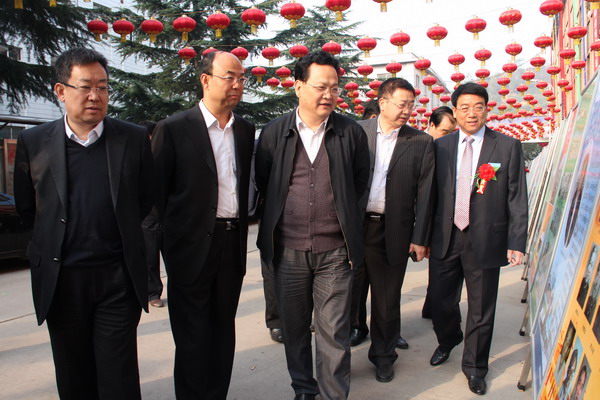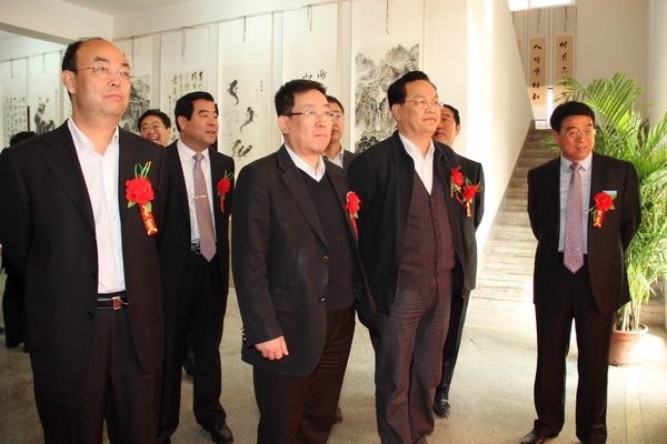 與會領(lǐng)導(dǎo)及來賓觀看王石凹礦職工美術(shù)書法攝影作品展