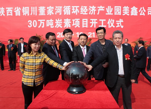 10月21號上午,總投資14.86億元的美鑫公司30萬噸炭素項目,在銅川市董家河循環(huán)經(jīng)濟(jì)產(chǎn)業(yè)園開工建設(shè)。這標(biāo)志著擬投資150億元的董家河循環(huán)經(jīng)濟(jì)產(chǎn)業(yè)集群項目,正式進(jìn)入全面開發(fā)建設(shè)階段。陜煤化集團(tuán)董事長、黨委書記華煒,陜有色控股集團(tuán)董事長黃曉平先后致辭,陜西美鑫產(chǎn)業(yè)投資有限公司董事長拓劉毅介紹項目基本情況,開工儀式由銅川市委副書記、市長王莉霞主持。