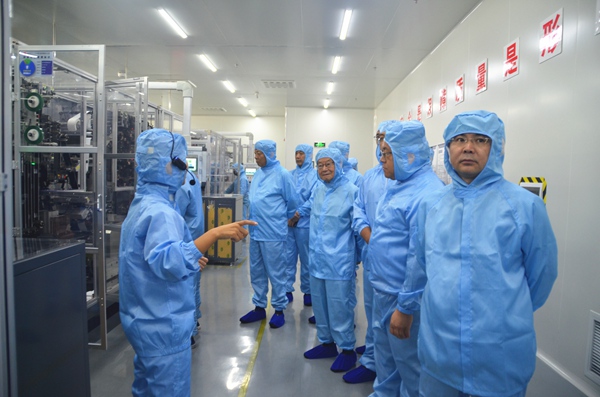 當(dāng)日下午,院士專家一同前往陜煤集團(tuán)新能源新材料基地新能源潔凈車間,在相關(guān)人員的陪同下,身著潔凈服,深入?yún)⒂^了結(jié)構(gòu)功能材料等四條試驗(yàn)生產(chǎn)線,饒有興趣地了解了相關(guān)技術(shù)和設(shè)備情況,并在現(xiàn)場座談交流,認(rèn)真聽取了陜煤集團(tuán)高新技術(shù)產(chǎn)品開發(fā)情況匯報(bào),對(duì)陜煤集團(tuán)高新技術(shù)產(chǎn)品開發(fā)及科技創(chuàng)新工作提出了寶貴意見和建議。