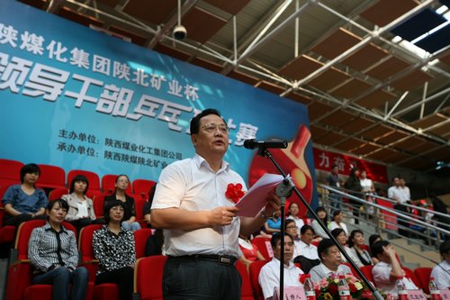 8月22日,陜西煤業(yè)化工集團(tuán)公司“陜北礦業(yè)杯”領(lǐng)導(dǎo)干部乒乓球賽在榆林市體育館舉行。集團(tuán)公司黨委副書記、工會(huì)主席馬富元,集團(tuán)公司所屬企業(yè)有關(guān)領(lǐng)導(dǎo)和23支參賽代表隊(duì)、103名處局級(jí)運(yùn)動(dòng)員參加了開幕式。