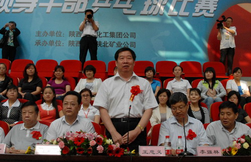 開幕式在雄壯的《中華人民共和國(guó)國(guó)歌》中開始。集團(tuán)公司黨委副書記、工會(huì)主席馬富元致開幕詞。馬富元指出,剛剛過去的“十一五”,集團(tuán)公司綜合實(shí)力顯著增強(qiáng),產(chǎn)業(yè)體系日益完善,社會(huì)事業(yè)蓬勃發(fā)展,黨的建設(shè)深入推進(jìn),職工生活持續(xù)改善,幸福指數(shù)不斷提升,實(shí)現(xiàn)了“十一五”圓滿收官。尤其是2010年,集團(tuán)公司煤炭產(chǎn)銷雙雙突破億噸大關(guān),銷售收入561億元,利稅178億元,利潤(rùn)105億元,成為陜西省企業(yè)第一。今年是集團(tuán)“十二五”開局之年,上半年集團(tuán)各項(xiàng)經(jīng)濟(jì)指標(biāo)再創(chuàng)歷史新高,再次位居全省第一。其中,1-6月份煤炭生產(chǎn)5229萬噸,同比增長(zhǎng)16.9%;化工產(chǎn)品301萬噸,同比增長(zhǎng)62.7%;實(shí)現(xiàn)銷售收入336.82億元,利潤(rùn)50.2億元,同比分別增長(zhǎng)49.3%和94.2%。還先后完成了科技板塊、后勤板塊、水泥板塊的整合,產(chǎn)業(yè)多元化和運(yùn)營(yíng)專業(yè)化的格局逐步呈現(xiàn)。在我們致力推動(dòng)經(jīng)濟(jì)社會(huì)又好又快發(fā)展的過程中,高度重視體育事業(yè)的全面發(fā)展,不斷滿足廣大干部職工日益增長(zhǎng)的體育文化需求,全集團(tuán)體育設(shè)施日益完善,全民健身運(yùn)動(dòng)蓬勃開展。這些成績(jī)的取得值得驕傲和自豪,凝聚著集團(tuán)公司上下各級(jí)組織、各級(jí)領(lǐng)導(dǎo)、廣大職工的辛勤汗水和艱苦付出,也體現(xiàn)了集團(tuán)公司上下各級(jí)領(lǐng)導(dǎo)干部引領(lǐng)企業(yè)發(fā)展的卓越領(lǐng)導(dǎo)力,也充分證明了集團(tuán)公司上下的領(lǐng)導(dǎo)干部隊(duì)伍是一支能征善戰(zhàn)的強(qiáng)大團(tuán)隊(duì)。今天,我們精心組織舉辦這次“陜北礦業(yè)杯”領(lǐng)導(dǎo)干部乒乓球比賽,目的就是通過開展有益身心的健身體育運(yùn)動(dòng),進(jìn)一步弘揚(yáng)銳意進(jìn)取、追求卓越的企業(yè)精神,倡導(dǎo)健康生活方式,推動(dòng)全民健身運(yùn)動(dòng)的深入開展,展示陜煤化人的嶄新風(fēng)貌,切實(shí)增強(qiáng)領(lǐng)導(dǎo)干部隊(duì)伍的凝聚力、向心力和戰(zhàn)斗力,激發(fā)各級(jí)領(lǐng)導(dǎo)干部昂揚(yáng)的斗志、飽滿的熱情,為建設(shè)中國(guó)一流安全節(jié)能環(huán)保能源化工企業(yè)做出新的更大的貢獻(xiàn)。