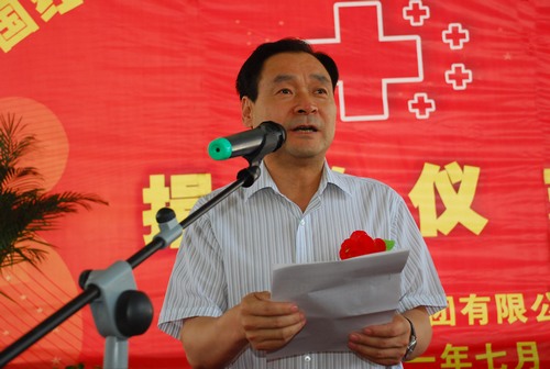 中國紅十字基金會(huì)仁愛基金志愿者工作辦主任時(shí)進(jìn)龍?jiān)诰栀?zèng)議式上講話