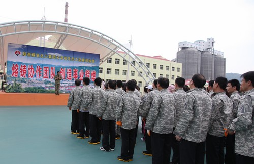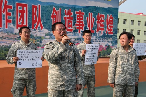 此次拓展訓(xùn)練是繼2007年5月集團(tuán)公司機(jī)關(guān)員工第一次拓展訓(xùn)練后,主要針對(duì)近年來(lái)新進(jìn)集團(tuán)公司機(jī)關(guān)、陜煤股份機(jī)關(guān)員工組織開(kāi)展的活動(dòng),旨在磨練意志、陶冶情操、完善人格、熔煉團(tuán)隊(duì)。在集團(tuán)公司領(lǐng)導(dǎo)的大力支持下,集團(tuán)公司機(jī)關(guān)黨委、工會(huì)對(duì)此次活動(dòng)進(jìn)行了精心組織,集團(tuán)公司機(jī)關(guān)黨委書記、工會(huì)主席夏迎廣以普通隊(duì)員的身份與其他參訓(xùn)員工一起自始至終參加了訓(xùn)練。此次拓展訓(xùn)練得到了黃陵礦業(yè)公司領(lǐng)導(dǎo)及該公司人力資源部等部門的大力協(xié)助,為訓(xùn)練圓滿完成打下堅(jiān)實(shí)基礎(chǔ)。訓(xùn)練期間,黃陵礦業(yè)公司領(lǐng)導(dǎo)宋老虎、范京道、李孝波、張建軍、梅方義等看望了參訓(xùn)人員。