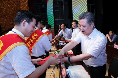 與會領(lǐng)導向受表彰的先進集體和先進個人代表頒發(fā)了獎牌和榮譽證書
