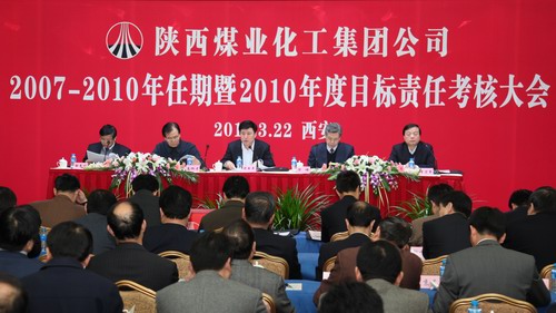 3月22日,省委組織部、省國(guó)資委共同組成考核組,對(duì)陜西煤業(yè)化工集團(tuán)公司2007-2010年任期暨2010年度目標(biāo)責(zé)任進(jìn)行考核??己私M成員、集團(tuán)公司領(lǐng)導(dǎo)、集團(tuán)公司所屬單位的主要領(lǐng)導(dǎo)和機(jī)關(guān)部門(mén)的負(fù)責(zé)同志以及職工代表140余人參加了會(huì)議。