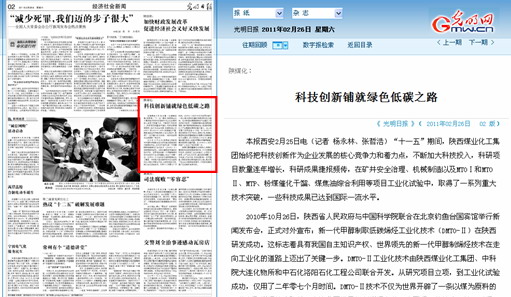 本報西安2月25日電(記者 楊永林、張哲浩)“十一五”期間,陜西煤業(yè)化工集團(tuán)始終把科技創(chuàng)新作為企業(yè)發(fā)展的核心競爭力和著力點,不斷加大科技投入,科研項目數(shù)量連年增長,科研成果捷報頻傳,在礦井安全治理、機械制造以及MTOⅠ和MTOⅡ、MTP、粉煤催化干餾、煤焦油綜合利用等項目工業(yè)化試驗中,取得了一系列重大技術(shù)突破,一些科技成果已達(dá)到國際一流水平。