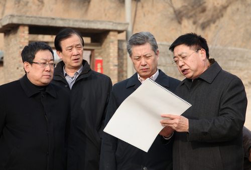 陜煤化集團黨委書記、董事長華煒,總經(jīng)理高仰才在荔枝園小區(qū)建設(shè)工地檢查工作。
