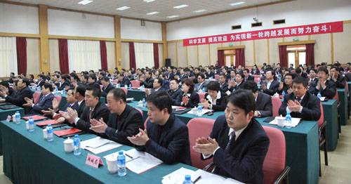 集團(tuán)公司總經(jīng)理高仰才向大會(huì)作了題為《科學(xué)發(fā)展,提高效益,為實(shí)現(xiàn)新一輪跨越發(fā)展而努力奮斗》的行政工作報(bào)告。報(bào)告首先回顧了集團(tuán)公司“十一五”的工作。“十一五”期間,集團(tuán)公司以科學(xué)發(fā)展觀為指導(dǎo),堅(jiān)持“以煤炭開(kāi)發(fā)為基礎(chǔ)、以煤化工為主導(dǎo)、多元發(fā)展”的戰(zhàn)略思路,積極主動(dòng)地應(yīng)對(duì)金融危機(jī)等各種內(nèi)外經(jīng)營(yíng)環(huán)境的變化,上下團(tuán)結(jié),砥礪奮進(jìn),取得了令人鼓舞的好成績(jī)。煤炭產(chǎn)量由“十五”末的3082萬(wàn)噸增長(zhǎng)到1億噸,凈增加近7000萬(wàn)噸,增幅為227%;銷售收入由“十五”末的90億元增長(zhǎng)到515億元,增幅為450%;利潤(rùn)由“十五”末的4.3億元增長(zhǎng)到80億元,增幅為1760%;化工主要產(chǎn)品產(chǎn)量2010年完成400多萬(wàn)噸;參控股電力裝機(jī)突破500萬(wàn)千瓦;機(jī)械制造、建筑施工等產(chǎn)業(yè)均有大幅增長(zhǎng);資產(chǎn)規(guī)模達(dá)到1330億元,比“十五”末翻了三番,在中國(guó)企業(yè)500強(qiáng)排名由“十五”末的353位提升到2010年的195位,順利實(shí)現(xiàn)了“十一五”確定的“15558”戰(zhàn)略目標(biāo)。高仰才從堅(jiān)持項(xiàng)目帶動(dòng),產(chǎn)業(yè)結(jié)構(gòu)進(jìn)一步優(yōu)化;完善市場(chǎng)體系,營(yíng)銷質(zhì)量不斷提高;深化企業(yè)改革,不斷創(chuàng)新發(fā)展模式;安全形勢(shì)穩(wěn)定,為發(fā)展提供了有力保障;以科技為引領(lǐng),關(guān)鍵技術(shù)取得了重大突破;節(jié)能減排成效顯著,循環(huán)經(jīng)濟(jì)進(jìn)一步發(fā)展;扎實(shí)推進(jìn)民生工程,不斷建設(shè)和諧企業(yè);積極履行社會(huì)責(zé)任,塑造良好的企業(yè)形象等八個(gè)方面總結(jié)了集團(tuán)公司“十一五”發(fā)展成就,指出“十一五”是陜煤化集團(tuán)奠定基礎(chǔ)、快速壯大的五年,是歷經(jīng)挑戰(zhàn)、繼往開(kāi)來(lái)的五年,也是職工受益最多、得到實(shí)惠最大的五年。