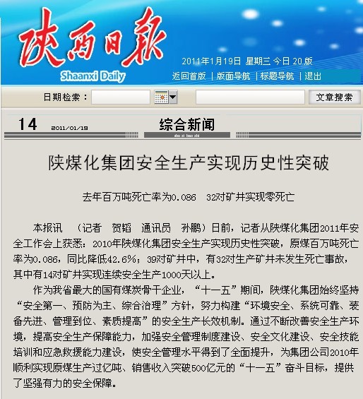 《陜西日?qǐng)?bào)》2011年1月19日14版