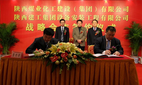 建設(shè)集團(tuán)公司董事長(zhǎng)、黨委書記魏效農(nóng)在致辭中講到,建設(shè)集團(tuán)重組成立兩年來(lái),在陜煤化集團(tuán)的正確領(lǐng)導(dǎo)和大力支持下,始終按照“在做好中做大,在做優(yōu)中做強(qiáng)”的發(fā)展思路,把陜煤內(nèi)部市場(chǎng)作為起飛的跑道,把開拓外部市場(chǎng)作為做大做強(qiáng)的制高點(diǎn),內(nèi)抓管理強(qiáng)素質(zhì),外拓市場(chǎng)樹形象,積極從依靠陜煤項(xiàng)目保生存向依托陜煤品牌促發(fā)展轉(zhuǎn)變,從施工總承包向工程總承包轉(zhuǎn)變,從低端市場(chǎng)向高端市場(chǎng)提升,經(jīng)濟(jì)規(guī)模逐年擴(kuò)大,發(fā)展質(zhì)量不斷提高,“煤化建設(shè)”品牌顯現(xiàn)出勃勃生機(jī),2009年實(shí)現(xiàn)營(yíng)業(yè)收入34億元,今年預(yù)計(jì)可實(shí)現(xiàn)營(yíng)業(yè)收入40億元以上。建設(shè)集團(tuán)與陜西建工集團(tuán)設(shè)備安裝公司同屬建筑施工企業(yè),經(jīng)營(yíng)業(yè)務(wù)有著很多的相似性和互補(bǔ)性,本著“優(yōu)勢(shì)互補(bǔ),合作共贏”的理念,雙方經(jīng)過(guò)多次醞釀和磋商,達(dá)成了“合作成就共贏,共贏引領(lǐng)共同發(fā)展”的共識(shí),成就了雙方的戰(zhàn)略合作。
