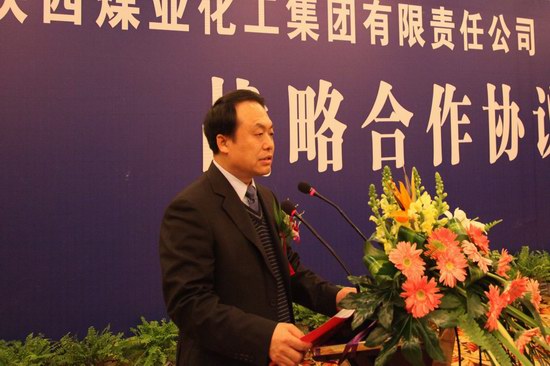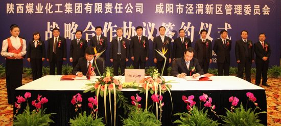咸陽市市長莊長興代表咸陽市委、市政府對(duì)陜煤化集團(tuán)2010年煤炭產(chǎn)銷雙雙突破億噸大關(guān),實(shí)現(xiàn)銷售收入突破500億元,提前完成“十一五”奮斗目標(biāo),取得“兩年翻一番”的優(yōu)異成績表示熱烈的祝賀,并指出此次戰(zhàn)略合作協(xié)議的簽訂標(biāo)志著雙方合作進(jìn)入了實(shí)質(zhì)性階段。他希望建設(shè)集團(tuán)充分發(fā)揮自身優(yōu)勢(shì),在參與涇渭新區(qū)開發(fā)建設(shè)的過程中實(shí)現(xiàn)大發(fā)展,同時(shí)要求涇渭新區(qū)以此次戰(zhàn)略合作協(xié)議的簽訂為契機(jī),充分依托陜煤化集團(tuán)的資金、技術(shù)和人才優(yōu)勢(shì),加快項(xiàng)目建設(shè),用一個(gè)個(gè)實(shí)實(shí)在在的項(xiàng)目把戰(zhàn)略協(xié)議簽訂的各項(xiàng)內(nèi)容落到實(shí)處,開創(chuàng)涇渭新區(qū)建設(shè)的新局面。